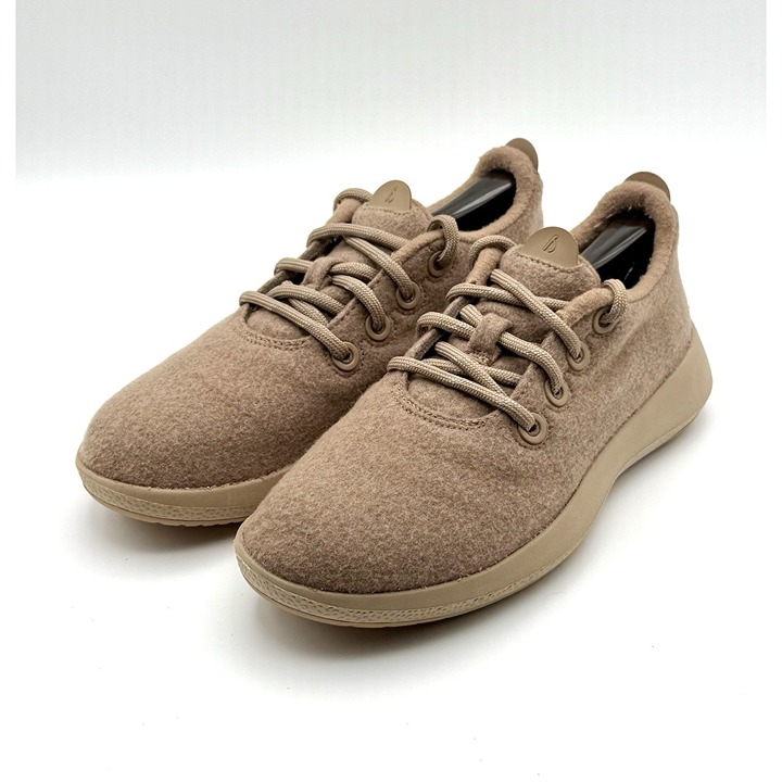 These Allbirds Women's Size 9 Light Brown Wool Runners are a stylish and comfortable athletic sneaker option for women. Made with wool as the upper material, they feature a lace-up closure and solid beige color, making them versatile for everyday wear. With a UK size of 6.5 and EU size of 39, these sneakers offer a cozy fit for those looking for a blend of style and comfort in their footwear.