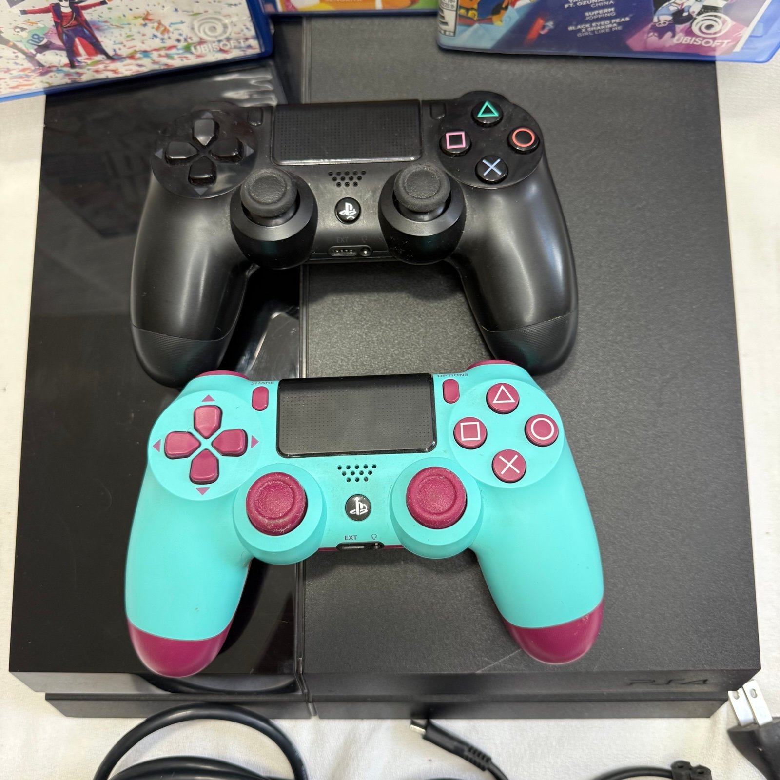 The Sony PS4 CUH-1115A is a home console that comes with 2 controllers, cables, and a Just Dance Party Pack with 5 games! . With a sleek black design, this Sony PlayStation 4 model offers 500 GB of storage capacity and connectivity via HDMI. Perfect for gaming and entertainment, this console is a versatile choice for those looking to experience the latest games and multimedia content.